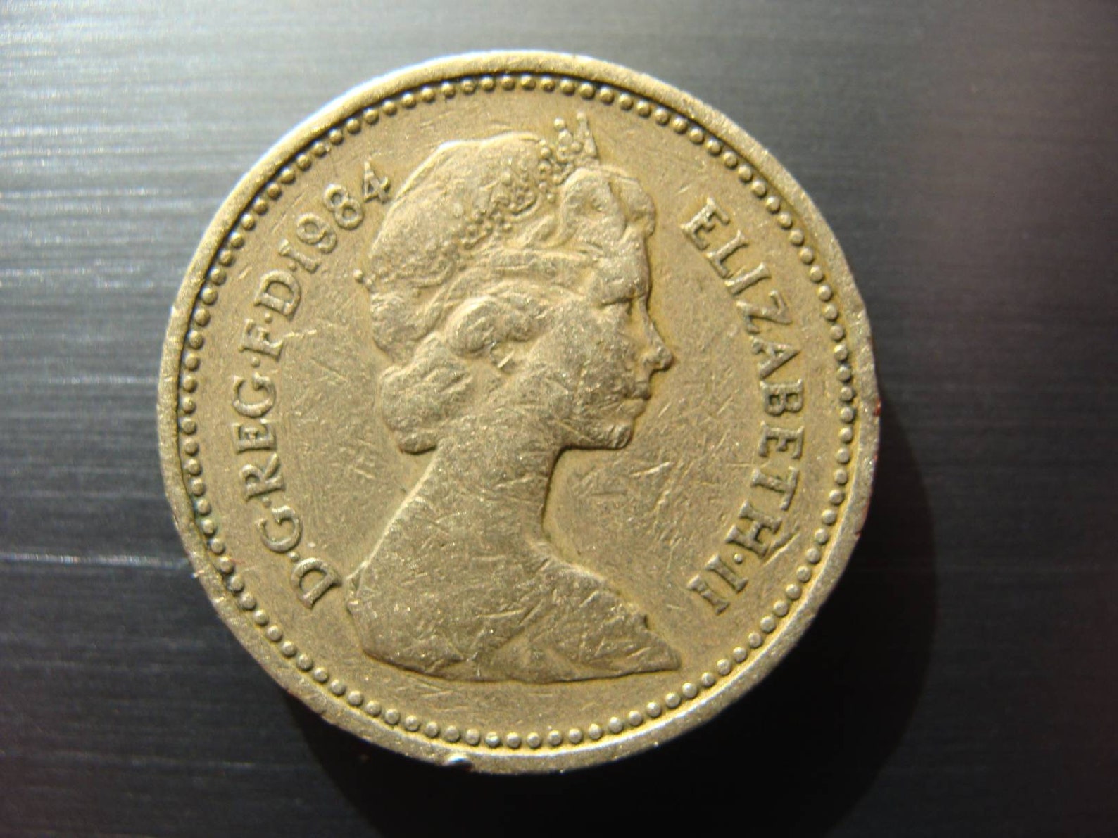 The main currency of the UK, the GBP £1 coin replaced the previous £1 banknote in April 1983. The 1984 One Pound Coin - Thistle (a British one pound (£1) coin) is a denomination of the pound sterling. The Obverse bears the Latin engraving "Dei Gratia Regina" meaning, "By the grace of God, Queen" and FD meaning "Defender of the Faith."