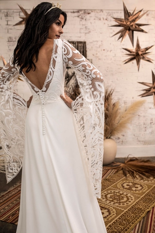 All Who Wander Lenox Bell sleeve wedding dress, Boho wedding gowns, Wedding dress long sleeve