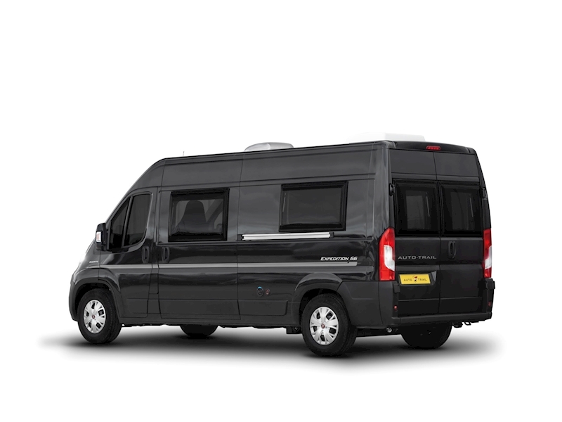 About this campervan. We are proud to present the new Autotrail Expedition 68, a brand new, sports focused campervan which features 4 travelling seats and a rear transverse bed 1.87m x 1.40m (6'1" x 4'5") which can be lifted to access a large storage area, ideal for your bikes, etc.. This model is aimed at a couple looking for a leisure van.