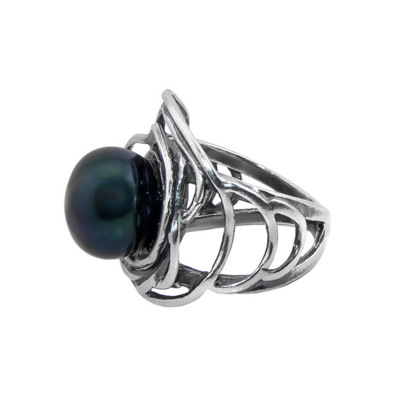 Black Stone Ring Men Black Pearls Rings Pearl Ring Sterling Etsy