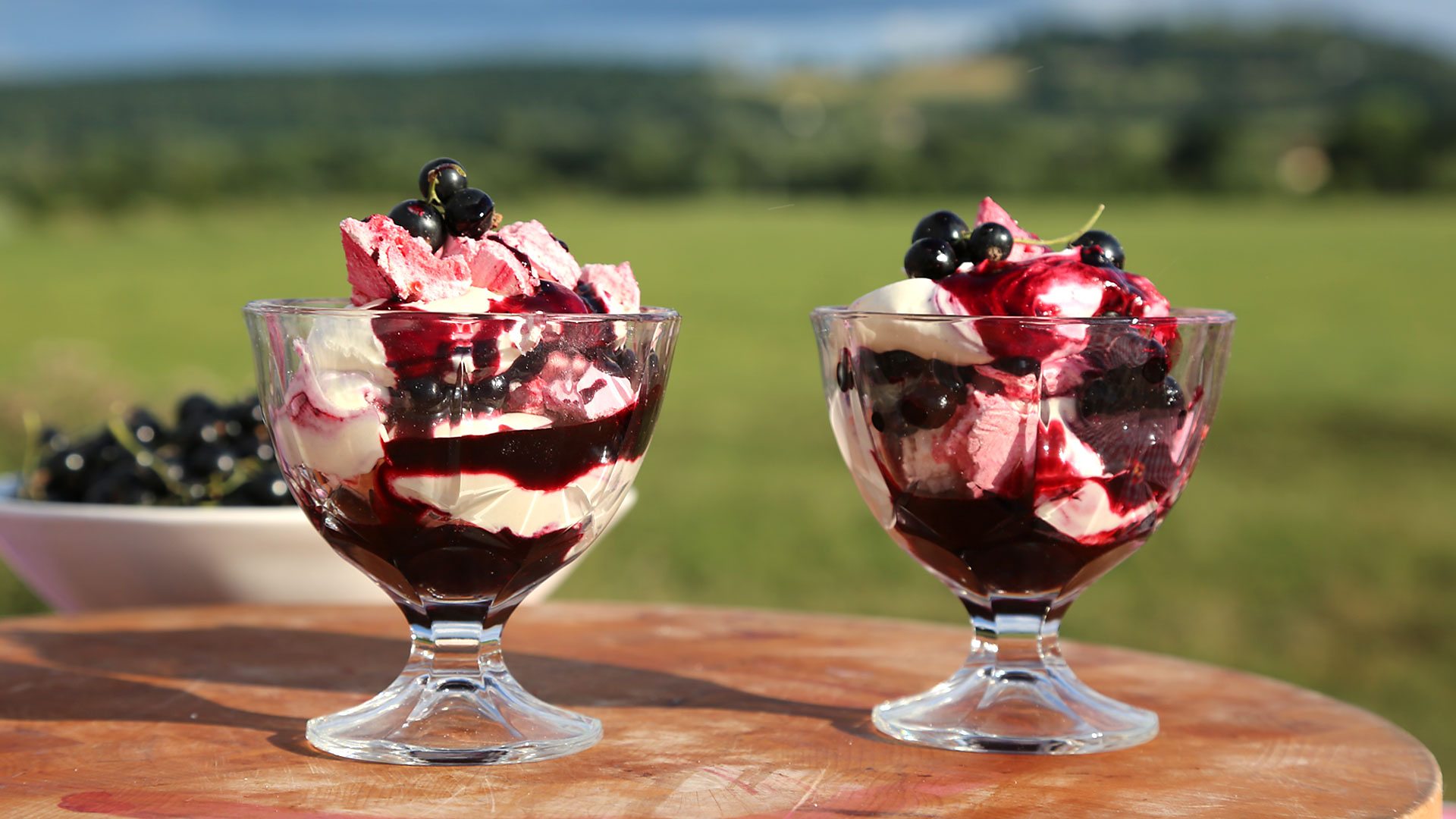 Instructions. Put the blackcurrants, lemon juice and caster sugar in a pan, heat gently for 20 minutes. Leave to cool. 300 g blackcurrants, 50 g caster sugar (superfine sugar), lemon juice. Pour the double cream and condensed milk into a large bowl. 600 ml double cream, 200 g condensed milk.