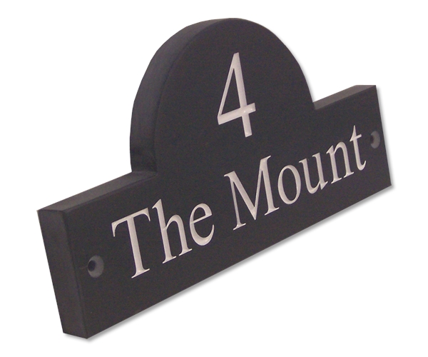 Traditionally v-groove engraved house signs in dark grey honed slate. Available in white, gold & chromed silver colour inlays. Deep engraved 10mm thick honed slate with a choice of twenty different fonts to personalise your home. Many popular sizes with bespoke sized signs also available. Slate house numbers from only £20.95.