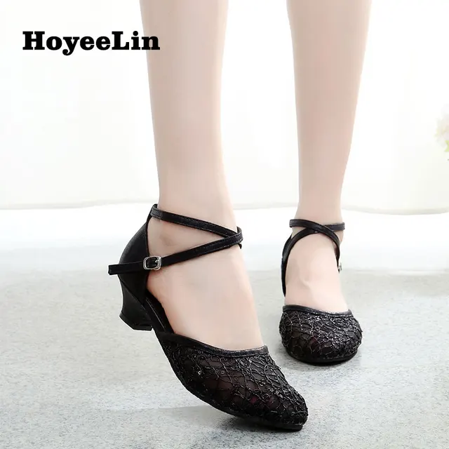 Ladies Black Satin Mesh LATIN Dancing Shoes Ballroom Shoes Cheap Salsa Dance Shoesin Dance