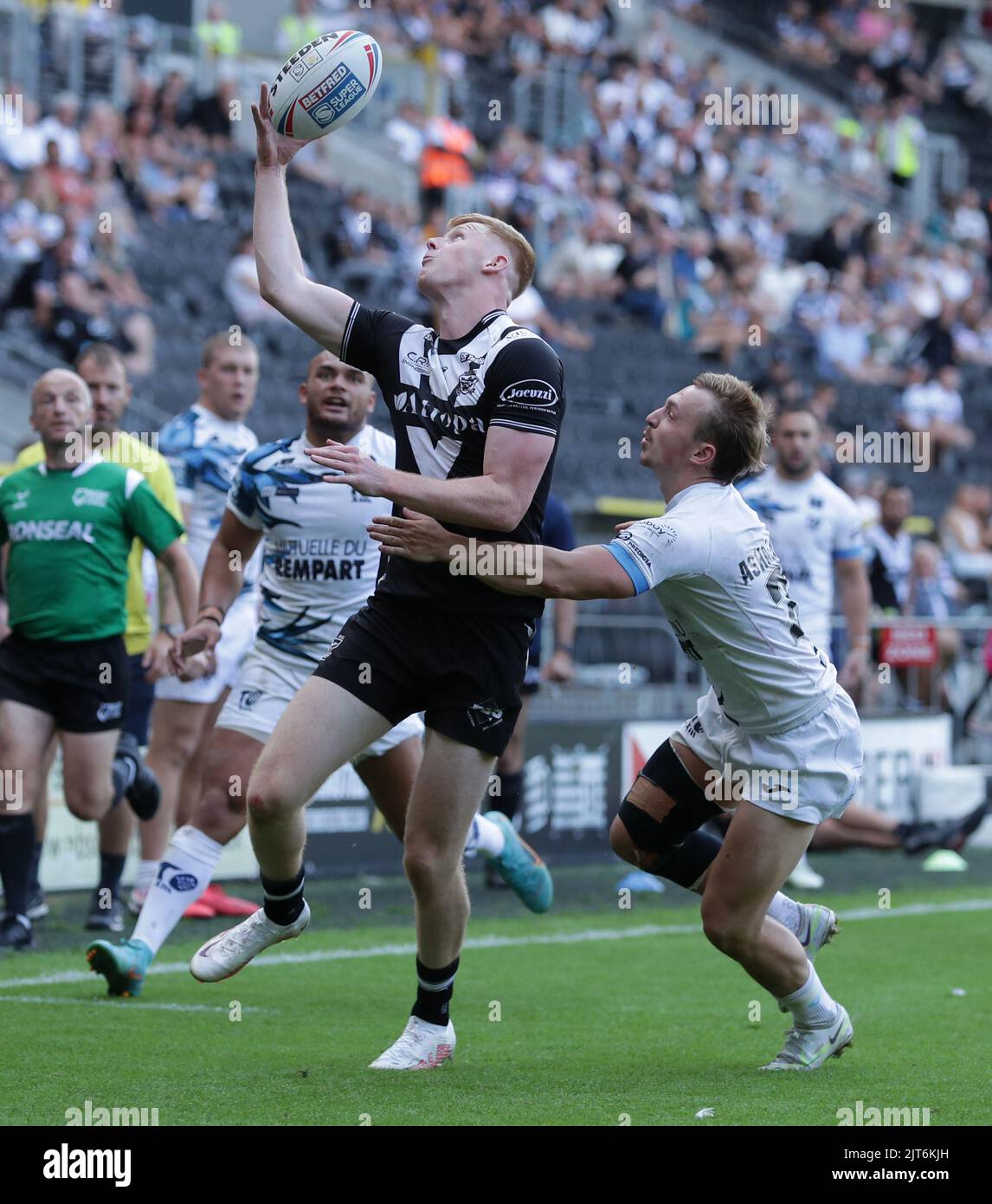 Hull FC's Ellis Longstaff catches the ball and scores his sides fifth try during the Betfred