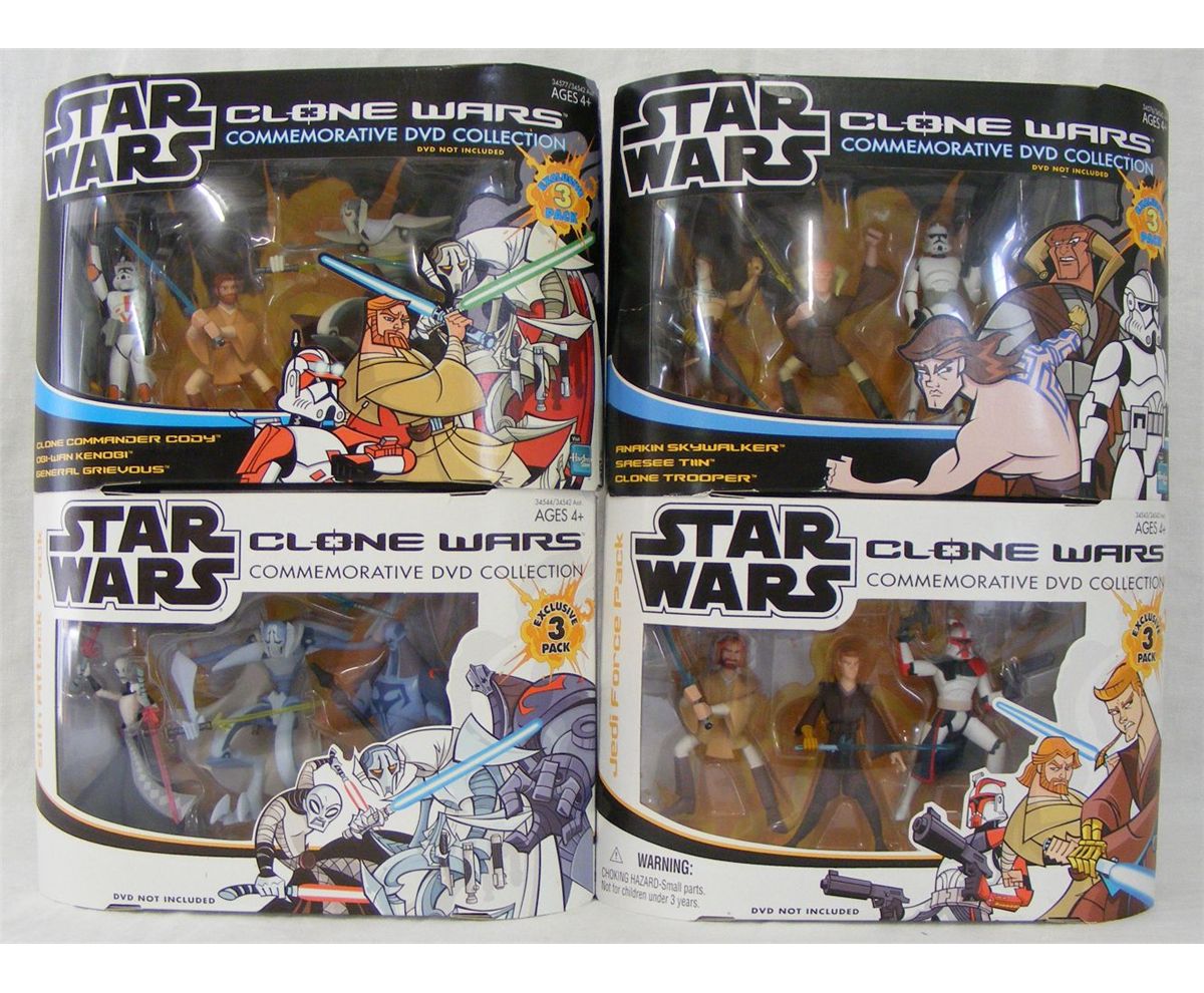 The Clone Wars Collection. Hasbro launched the Clone Wars toy line based on the animated Clone Wars TV show on July 26th 2008. Every figure in this series was kept in an animated-style to capture the character likeness from the TV show. The toy line featured nicely sculpted and even highly articulated figures, but it lacked variety with only a.