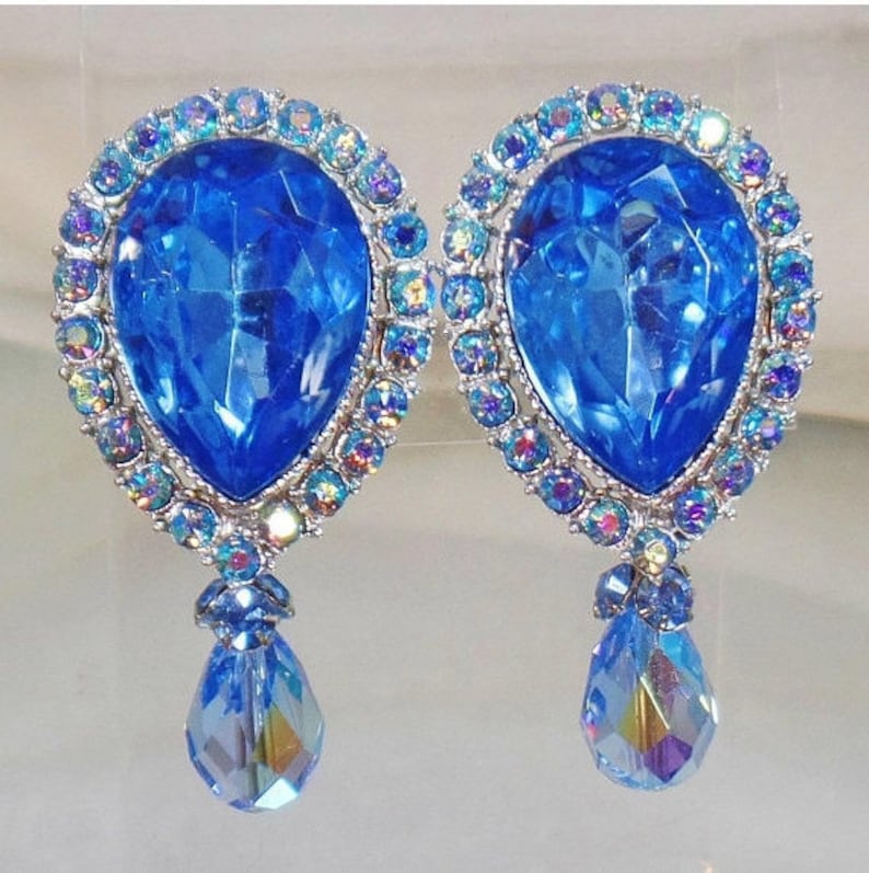 Oval Drop Earrings: Vintage Blue Long Drop Crystal Earrings. 2. £24.00. Shop vintage earrings at Lovett & Co. Our antique earrings come in many styles, including studs, art deco earrings, dangles, and pearl drop earrings.